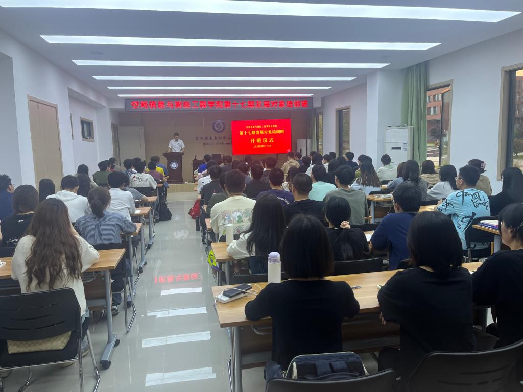 4月26日晚,beat365中国唯一官方网站分党校第十七期发展对象培训班在求本楼北204举行了开班式,学院党委书记、分党校校长范洪喜,学院党委秘书、培训班班主任、辅导员以及80名发展对象参加了开班式。