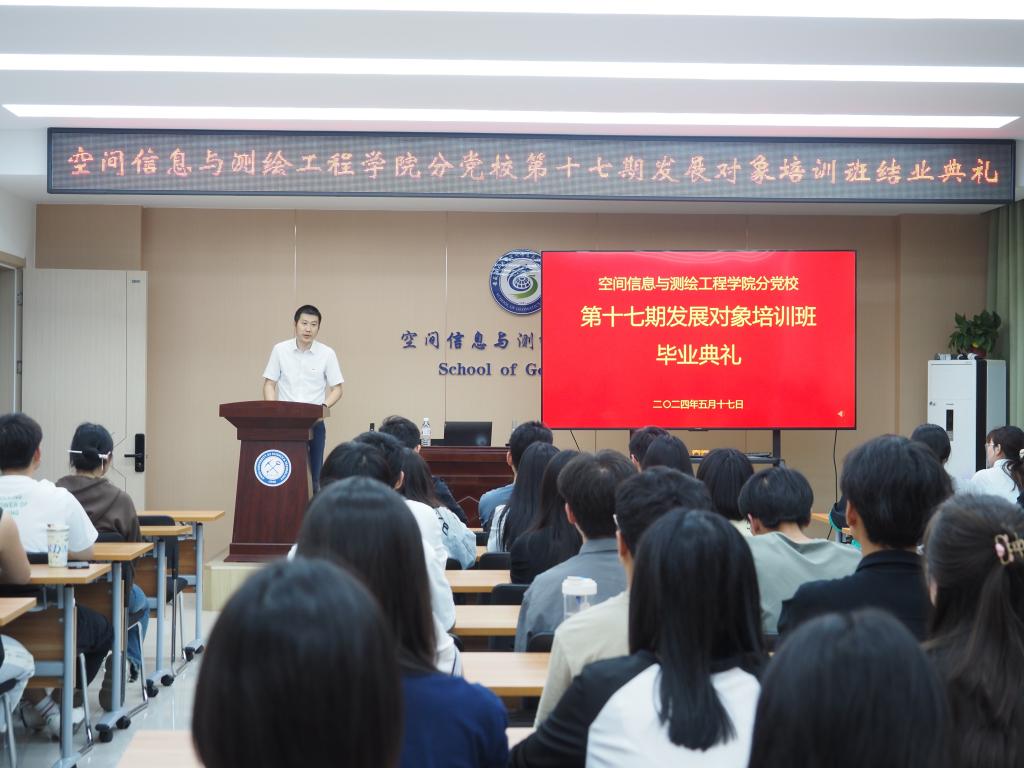 5月17日,beat365中国唯一官方网站分党校第十七期发展对象培训班结业典礼在求本楼北204报告厅举行。学院党委书记、分党校校长范洪喜,培训班班主任、辅导员以及全体学员参加了结业典礼,典礼由学院党委秘书管冠宇主持。