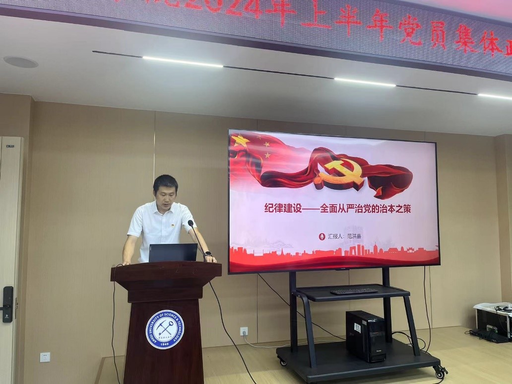 最后,学院党委书记范洪喜结合党纪学习教育主题和反面典型案例,以《纪律建设——全面从严治党的治本之策》为题为大家讲党课。党课围绕党的纪律的主要内容及六大纪律的内涵展开,就六大纪律中容易忽视和误解的情形结合教育系统和我校发生的反面典型案例进行提醒说明,要求全体师生党员要以“六大纪律”为准则,严守党的纪律,规范工作生活行为,争做“忠诚、干净、担当”的合格党员,紧密团结,凝聚合力,奋力推动学院教育事业高质量发展。