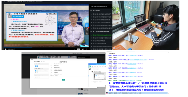 根据学院的安排部署,导航工程系组织教师对线上教学的方式方法进行了讨论,统一了认识。系部老师探索了适于不同课程的教学平台+互动平台(直播教学、互动、答疑)+考勤平台(作业、签到、研讨)的在线教学模式,预先将教学资源地址,教学资料(课件、电子书籍、课程简介、授课计划等)发给学生预习。开学第一周,导航工程系开设的10门课程,依托e-学会、学堂在线雨课堂、中国大学MOOC、超星学习通、腾讯课堂、QQ、微信等网络平台,通过PPT+录播,PPT+直播、视频演示、互动交流、线上线下练习等方式,顺利进行了线上授课。