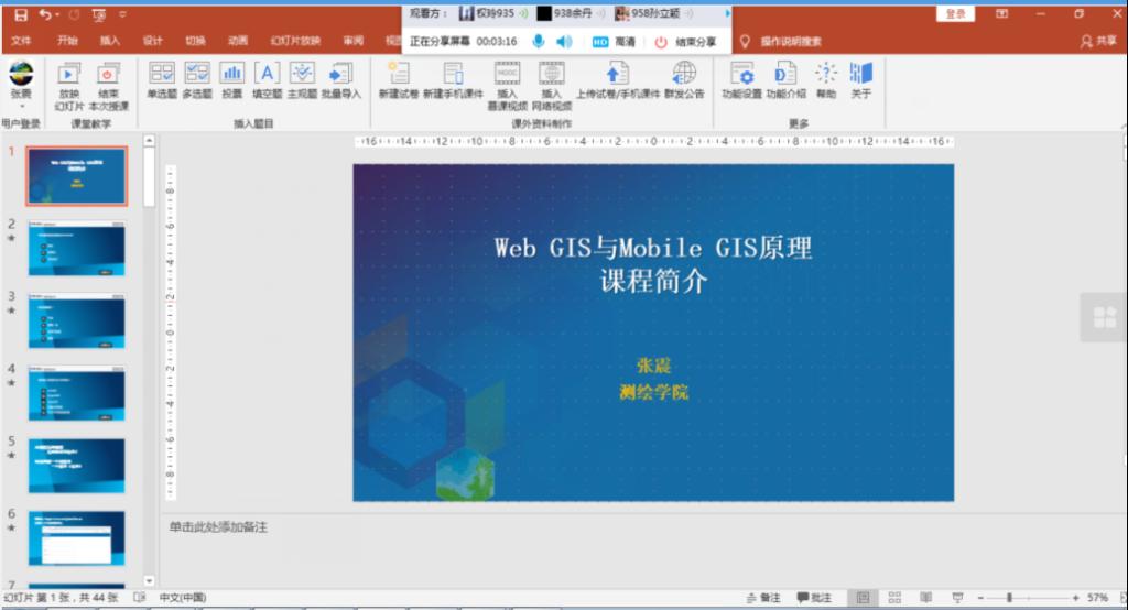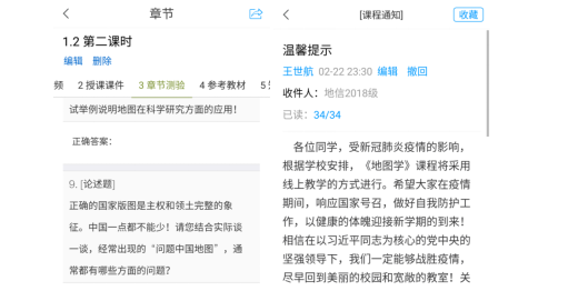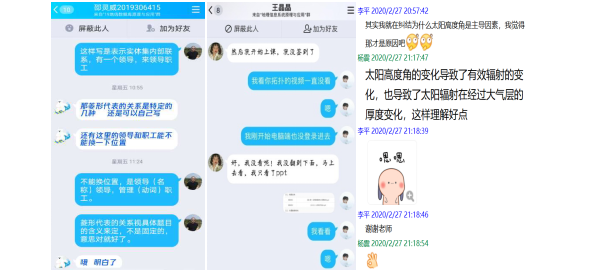 自开展线上教学以来,地理信息科学系就积极谋划工作预案,教师积极组织在线授课、线上答疑、线上测验等环节;主动参加超星集团公益培训课和“雨课堂”等网络教学培训,增强线上教学技能,夯实教学基础;根据课程特点,优选线上教学平台和教学资源,做好扎实开课准备,保证线上教学顺利开展;巧妙构思教学设计,体现“学生主体、教师主导”的思想;建立QQ群、微信群,加强与学生的互通互动。自2月24日首次线上开课以来,地理信息科学系承担的9门本科生和1门研究生课程,均顺利进行。