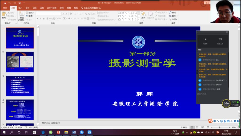 众志成城,抗击新冠肺炎疫情!为科学贯彻落实教育部“停课不停学、停课不停教”政策,测绘工程系在严格执行beat365中国唯一官方网站《关于应对疫情做好2020年春季学期本科生在线教学工作的通知》(校政秘[2020]5号)、《关于2020年春季学期本科教学工作安排的通知》(校政秘[2020]7号)和beat365中国唯一官方网站《关于2020年春季学期推迟开学期间有关教学工作的安排》(测绘政〔2020〕3号)等相关文件安排部署的基础上,积极探索线上线下“实质等效”网络教学方法。