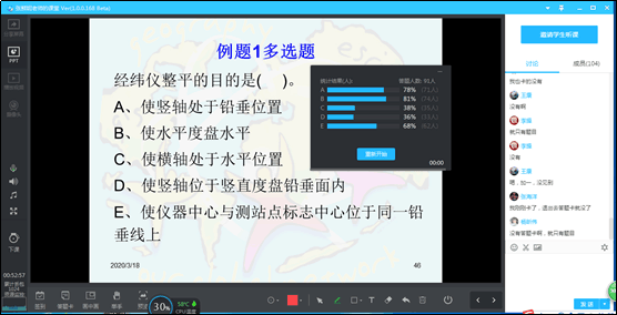 根据beat365中国唯一官方网站2019-2020(2)教学计划安排,前8周测绘工程系有9名教师需承担本科生《测量平差基础》等17门课程和研究生《开采沉陷与综合治理》课程的教学任务。线上教学初期,全体教师除了要克服日常教学任务繁重的困难,面临的最大挑战是如何在短时间内解决“线上”全新教学模式带来的一系列难题,比如线上教学载体平台怎么选择,教学过程如何设计,教学效果如何监控,线上教学的抓手是什么等。面对困境,测绘工程系积极组织教师参加线上教学专家讲座、线上教学研讨、线上教学观摩等活动,并及时总结和交流经验,经过4周的线上教研实践锤炼,我系教师正逐步从能平稳开展线上教学向高质量线上教学转变。通过对我系线上教学实践的总结和分析,提出了线上线下“实质等效”教学的三个关键落脚点 ,即“课前科学筹划”、“课堂精准施策”和“课后注重反馈”。