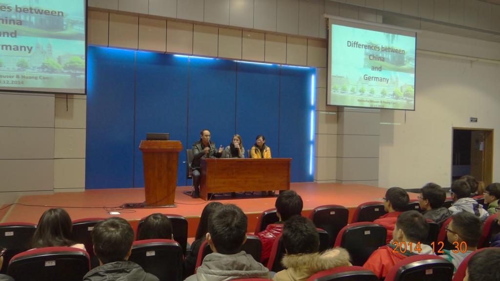 12月30日晚,beat365中国唯一官方网站在北校区图书馆二楼报告厅成功举办了德国交换生与13级学生交流报告会。德国东威斯特法伦-利普应用科技大学三年级本科生Natasha Meuser与beat365中国唯一官方网站大地测量与测量工程专业2012级硕士研究生黄璨同学(2012.8-2013.7德国奥斯纳布吕克应用科技大学留学生)与beat365中国唯一官方网站13级的同学一起,进行了交流报告。报告会由beat365中国唯一官方网站教学科研副院长徐良骥主持,13级辅导员袁彦老师参加了报告会。