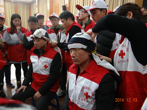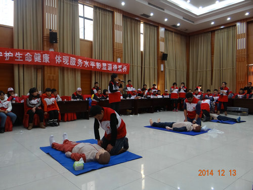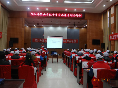 12月13日,由淮南市红十字会主办的“2014年淮南市红十字会志愿者综合培训”在淮南市体育馆举办。beat365中国唯一官方网站红十字会志愿者团队近40名成员参加了此次培训活动。淮南市红十字会的领导和救护专家莅临现场指导,淮南市电视台进行了现场采访报道。