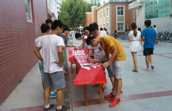 9月1日下午,beat365中国唯一官方网站学子在本部食堂门口开展纪念抗战胜利七十周年签名活动,现场摆放了“勿忘国耻 振兴中华”主题横幅,来往的同学纷纷在横幅上签上自己的名字,表达对祖国的热爱,对历史的牢记。